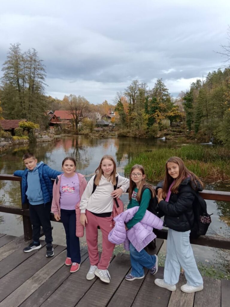 Nakon ukusnog ručka u restoranu Zrinski trebalo je upoznati i razgledati naš prirodni biser: vodeničarsko naselje Rastoke u sastavu naselja Slunj . Tuda protječe rijeka Slunjčica koja se preko sedrenih barijera ulijeva u rijeku Koranu. U svojem toku kroz Rastoke stvara mnoštvo malih jezera, brzaka i slapova od kojih su najpoznatiju slap Buk, Hrvoje te Vilina kosa. Rastoke se često nazivaju Male Plitvice. Zanimljivo je vidjeti mlinice koje pokreće voda , a u prošlosti su bile od velikog značaja za mljevenje žita . Jedinstvena je to graditeljska, povijesna i etnografska baština. Danas je to je vrlo posjećeno turističko odredište s bogatom gastro ponudom i smještajnim kapacitetima. Učenici su uživali u opuštajućoj šetnji uz Slunjčicu i slapove slušajući šum vode. Kupnjom suvenira u Rastokama željeli se sa sobom kući ponijeti dijelić ljepote ovog kraja.