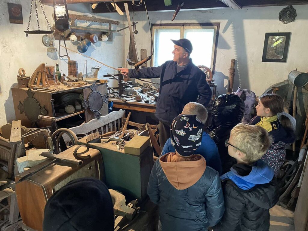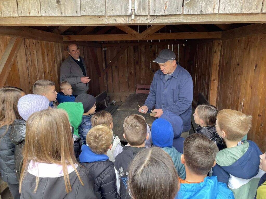 Kroz zanimljivo vodstvo domaćina, učenici su razgledali predmete iz svakodnevnog života naših baka i djedova – starinski namještaj, ručno tkane tkanine, tradicijsko posuđe, alate i različite druge predmete. Učenici su vidjeli i pločicu na kojoj su nekada djeca pisala, a zatim je spužvicom brisala zadatke i slova. Pogledali su i staru pernicu u kojoj je bila samo pokoja olovka i gumica – potpuno drugačije od današnjih pernica punih bojica i flomastera.