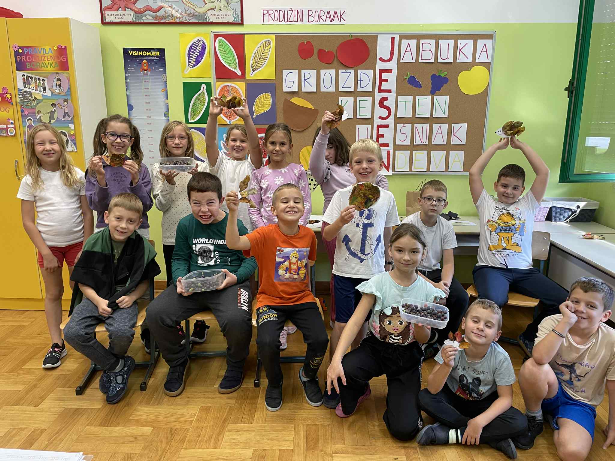 Mjesec rujan dao nam je nekoliko važnih datuma za obilježavanje. Hrvatski olimpijski dan obilježen je već i u redovnoj nastavi, no kao produžena ruka redovnoj nastavi, tijekom cijelog mjeseca, odlučili smo staviti naglasak na kretanje i tjelesni pokret, potičući učenike na aktivnost i sudjelovanje. Čest boravak na svježem zraku, na školskom igralištu, omogućio je učenicima da osvijeste dolazak novog godišnjeg doba – jeseni. Učenici su s veseljem pratili promjene u prirodi, promatrali boje i znakove jeseni, kroz različite smo aktivnosti učili o ovom godišnjem dobu. Igrom i učenjem nastali su i maštoviti radovi naših učenika. Ipak, boravkašima je najdraži dio obilježavanja prvog dana jeseni bio uživanje u ukusnom, domaćem grožđu čime smo odali počast kraljici Jeseni.